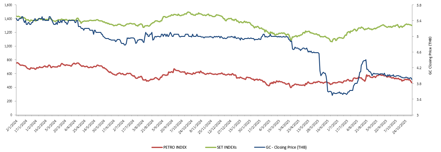 หมายเหตุ : ราคาปิด เป็นราคาที่ adjusted แล้วหลังจากการเปลี่ยนแปลงมูลค่าที่ตราไว้ และการเพิ่มทุนจดทะเบียนของบริษัทข้อมูลล่าสุด : วันที่ 5 พฤศจิกายน 2568